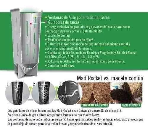 Las múltiples ventanas generan la auto poda radicular aérea. Guiadores de raíces para evitar su enrrido y apelmazamiento.